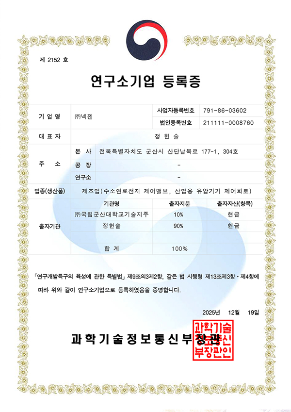 연구소기업 등록증 제2152호